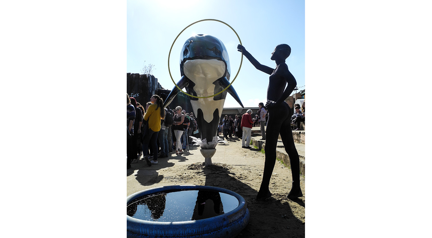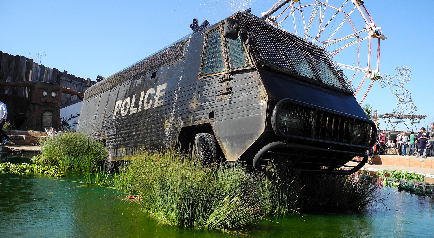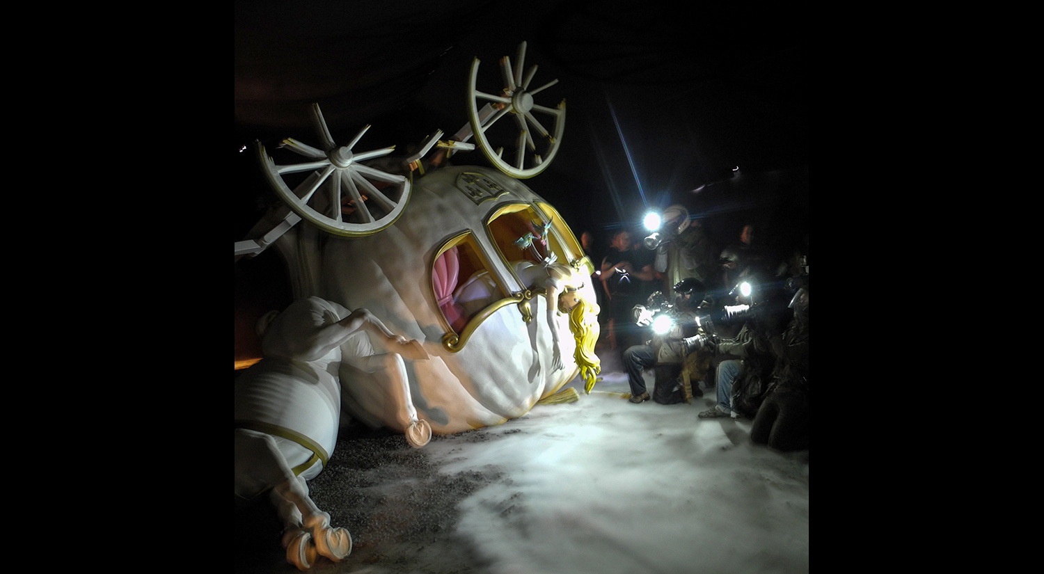 Greeted by disgruntled staff in high visibilty jackets and novelty ears, visitors were made to pass through mock security screening, and emerged in front of a destroyed fairy tale castle. Inside, the princess had died in a horse and carriage accident whilst trying to escape from pursuing paparazzi. Other installations included ‘Pocket money loans for kids’ (whilst I was there children played non-ironically in the sand pit – which felt strangely out of context), Mini Gulf (a crazy golf course themed around oil), a Ferris wheel, refugee boats, intimidating seagulls. And, of course, you had to exit through the gift shop.